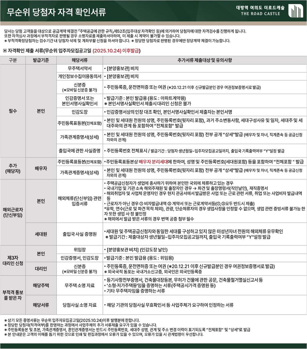 무순위당첨자 자격 확인서류